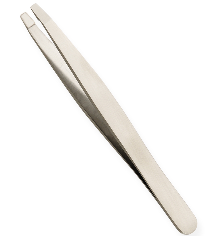 Eyebrow Tweezers Straight Available Sizes. 10 cm Details. All tweezers are made of superior quality stainless steel J1/410, HRC° (hardness) 43° – 45°. Beautifully designed top quality stainless steel. This all purpose tweezers is ideal for facial hairs, bikini lines and other unwanted body hair. Available in slanted, straight and pointed tips